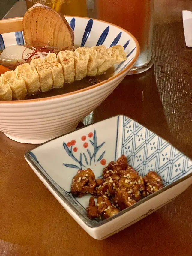 小食方面我哋叫咗個甜不辣,食到入面有好多魚肉,口感煙韌程度啱啱好,同喺台灣夜市食到嘅係一樣㗎!!再加埋個酸酸辣辣嘅汁,真係食到停唔到口啊🤤🤤