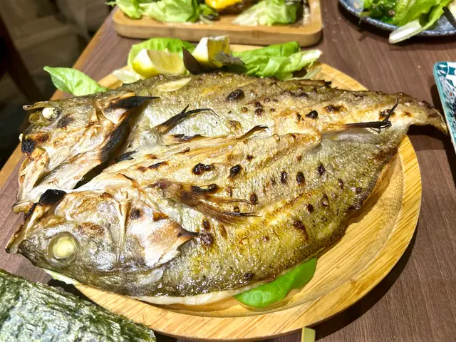 本地時魚一夜干是一道不容錯過的美味。這道菜品不僅展現了新鮮海魚的精華,透過特定的鹽醃和風乾處理,保持魚肉鮮美,肉質緊實,帶有自然的鮮味,搭配微鹹的口感,令人忍不住想多吃幾啖。