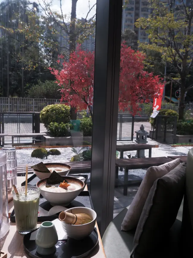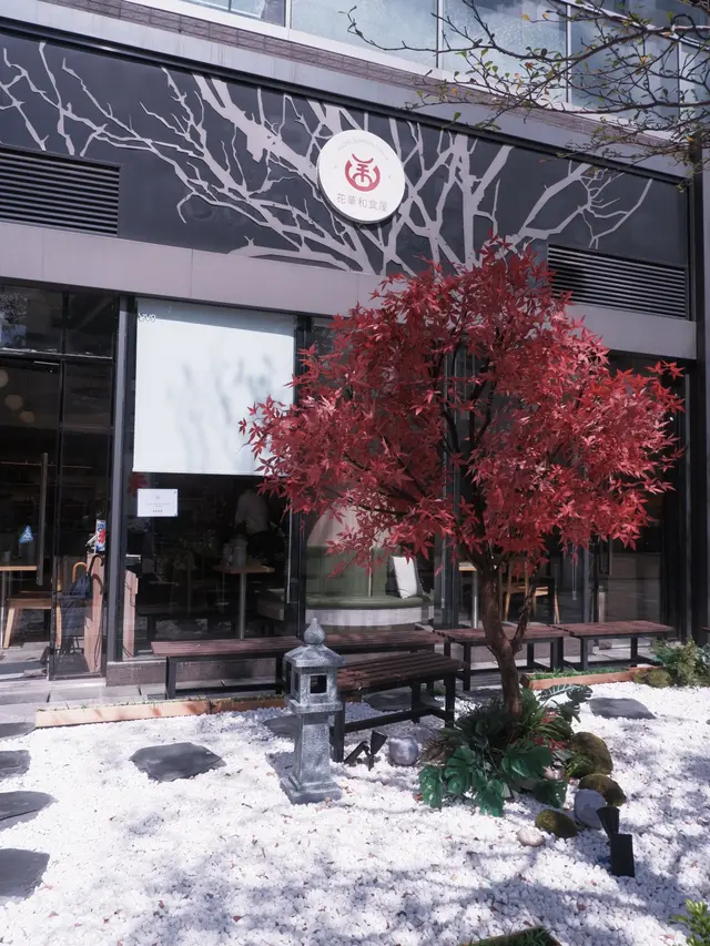 𖤐ˊ˗門口設有日式的楓葉庭園,