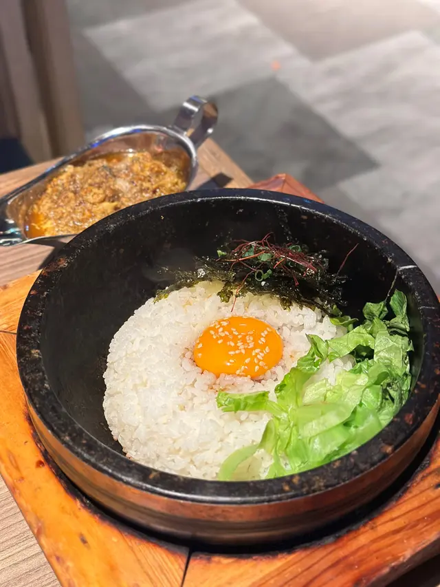 店員即場倒入蟹粉,拌勻石頭鍋飯,飯焦令整個飯更增添一層焦香口感,入口充滿蟹香