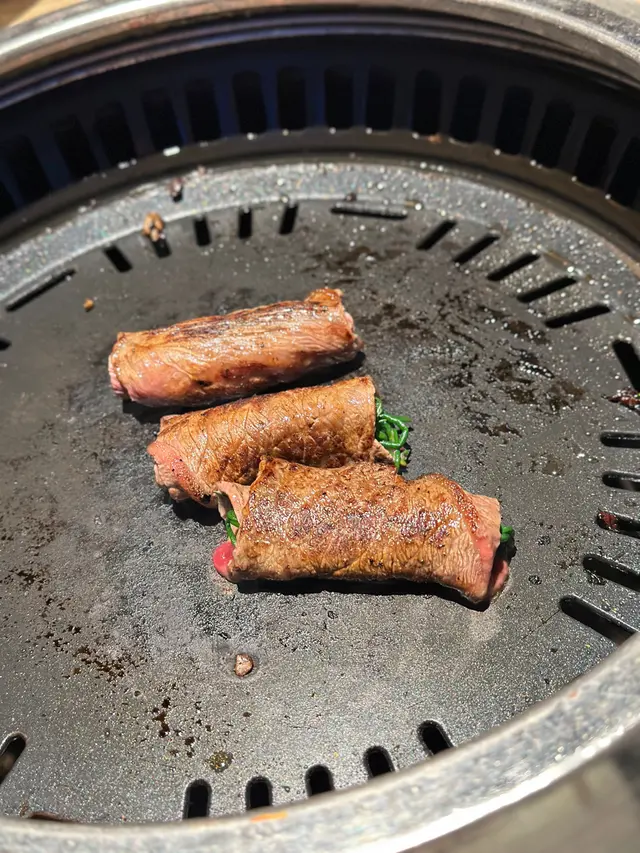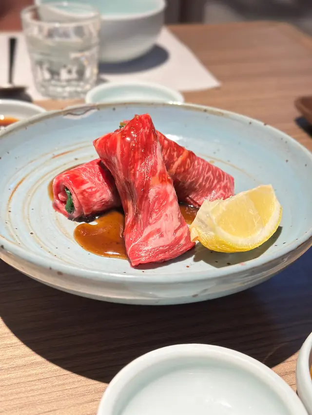 和牛包裹著沙蔥食,既清爽又中和咗和牛嘅油脂,食落非常可口
