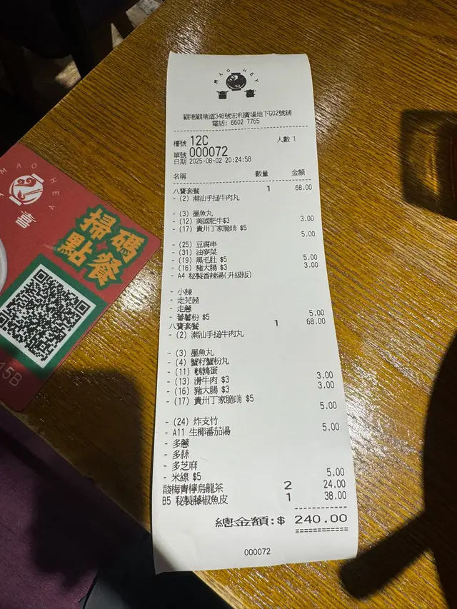 而最令人驚喜的搭配,非「酸梅青檸烏龍茶」莫屬。這杯特調飲品巧妙地將酸梅的鹹甜、青檸的清新與烏龍茶的醇厚完美融合。入口先是感受到青檸的微酸,接著是酸梅的甘甜,最後留下烏龍茶的茶香餘韻。這杯飲品不僅解辣,更能喚醒味蕾,讓人食慾大開,與牛丸麵、魚皮形成絕妙的黃金組合。