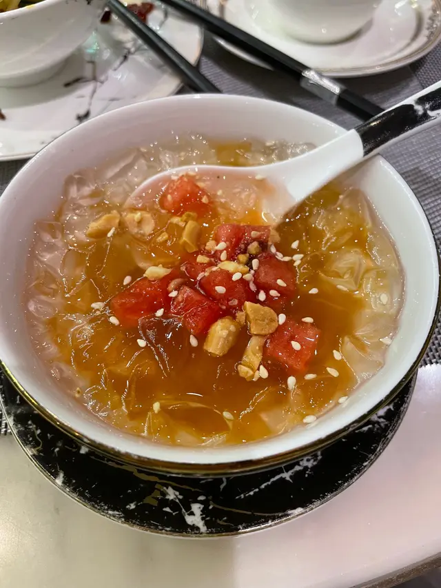 冰粉本身無味 但糖水帶有山楂味 整個甜品帶甜甜酸酸 職員表示 山楂可用作解辣呢