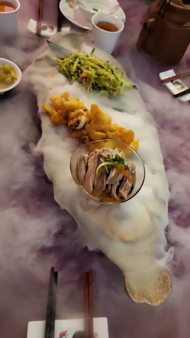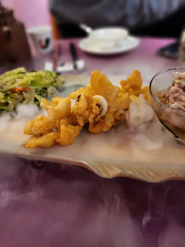 前菜三碟,酒香醉鴨舌,鴨舌脆口,酒香濃郁;椒鹽脆鮮魷,這個不得了,首先脆漿很薄非常香脆,完全沒有滴油炸得很好,鮮魷是鮮甜的;麻香鹹海蜇,海蜇很爽脆。