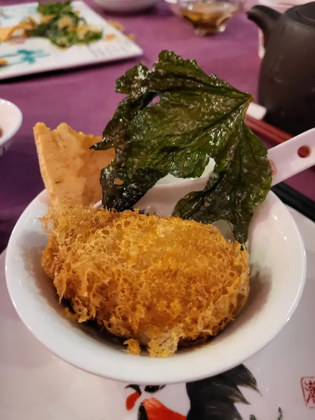 潮州芋泥炸鮮生蠔,大廚加了芋泥來炸,使味道層次感增加了,而且控制油溫得當做出了酥香的效果,蠔肉嫩滑,味道鮮甜到不得了。