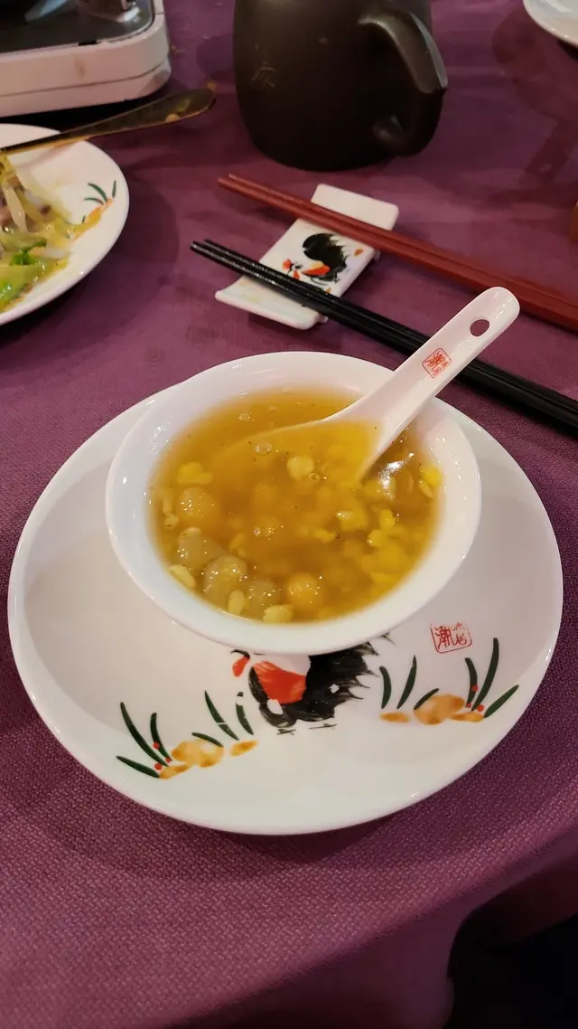 潮州福果綠豆爽,這種糖水香港比較少見,質地比稠身,味道清甜,白果是甜甜的有咬口。