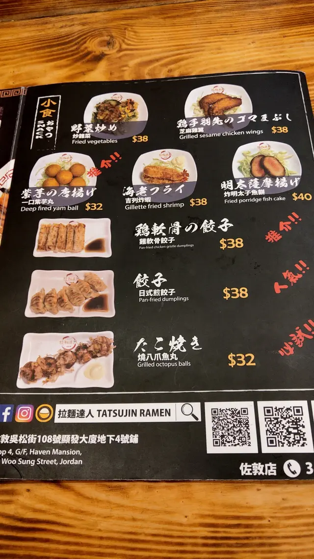 已結業的佐敦 <拉麵達人> <IVY>等級62020-08-05491 瀏覽 關注 在半年前,我好高興又幸運地,第一次在大眾點評抽霸王餐便抽到嘞! 還相約大眾點評認識的香港女食友一齊去位於佐敦吳松街的 <拉麵達人>!拉麵達人這裡地方不大,卻是每處擺設也花心思!這裡地方不大每處擺設也花心思恰巧當日店子廚房維修,因此小食暫停! 同時,店員亦提醒食客烹調要等上 15~20分鐘!餐牌另外,由於我們享用霸王餐的關係,不能以優惠價 $29~$39 點飯食!只可以原價!元祖達人拉麵 $79有3款湯底可選擇,包括:濃厚豬骨湯、黑蒜豬骨湯、北海道味噌湯我選了黑蒜豬骨湯底,她則選了濃厚豬骨湯底!口感爽滑彈牙!熱辣辣又掛湯! 令我食得滋味呢!薄切叉燒肉質超鬆化,一夾起就散了!元祖達人拉麵$79元祖達人拉麵$79柚子梳打 $20清爽解渴,恰到好處!]柚子梳打$20多謝店子!以上食評乃用戶個人意見 , 並不代表OpenRice之觀點。1分享已結業的佐敦 <拉麵達人> 拉麵達人 https://s.openrice.com/QrbT0ByWSW0檢舉 Eric19790708 就快執都仲有試 食活 動……?2020-08-30 回覆 <IVY> 大眾點評抽獎嘅嘅霸王餐,估唔到咁快執笠呀!2020-08-31 Eric19790708 啲侍 應店 員知道你大 眾點 評抽到享用免費餐,有冇咩嘢奇怪反應?2020-08-31 回覆 張貼 評分4味道4環境5服務5衛生5抵食推介美食元祖達人拉麵$79元祖達人拉麵$79用餐日期2020-01-07用餐途徑堂食用餐時段晚餐