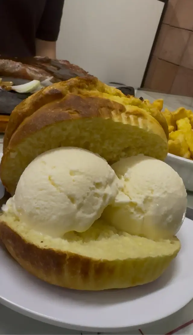雲呢拿雪糕軟中帶硬,有突出雲尼拿香油味道。菠蘿包有烘過,口感實淨鬆脆。