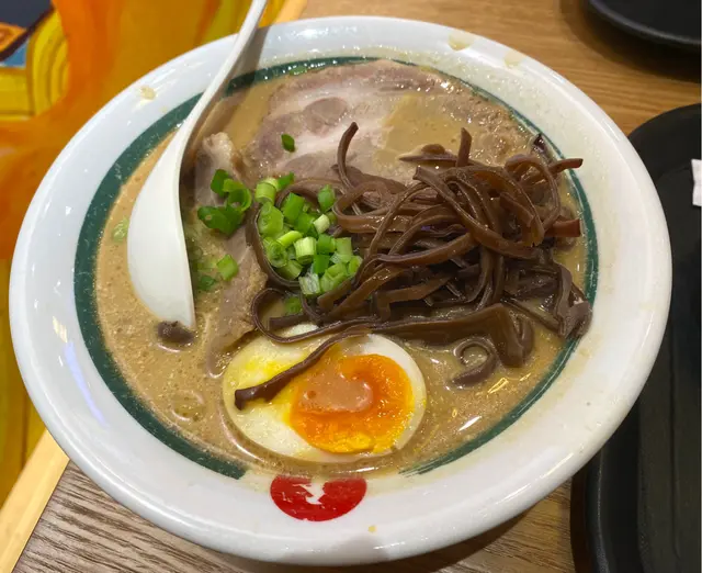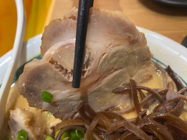 豬骨湯底濃郁,豬肉厚切,肥瘦均勻,與湯底非常配搭,配料豐富。