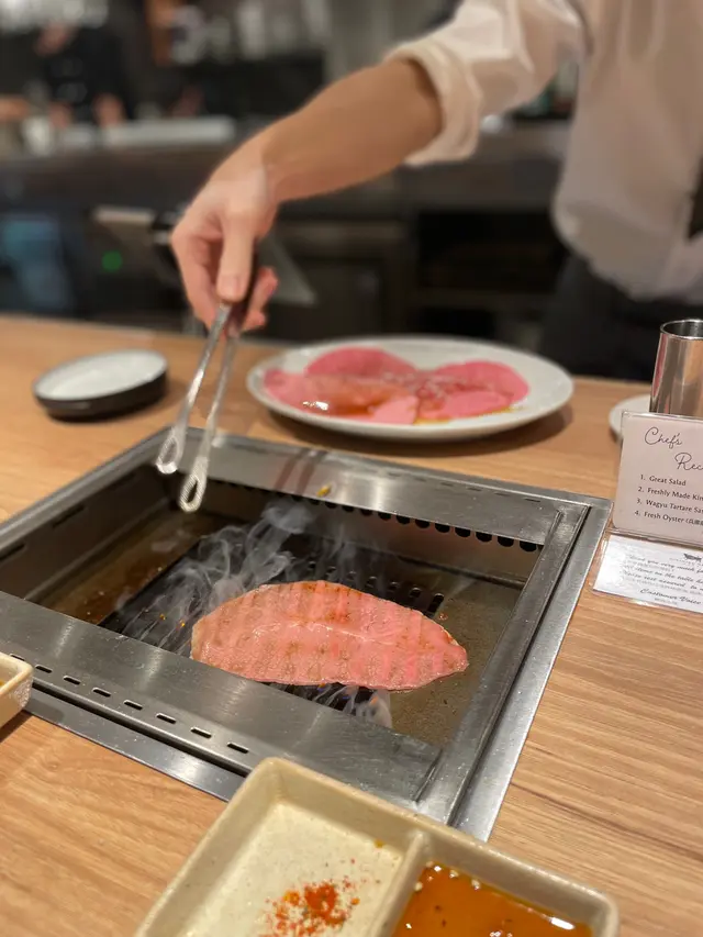 店員會介紹每片肉的部位,烤制時間,以及推薦蘸料和吃法,十分專業和貼心。