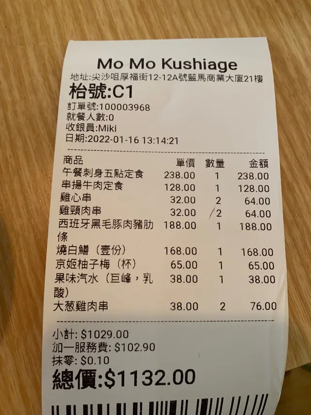所以我哋揀咗喺尖沙咀嘅 mo mo kushiage