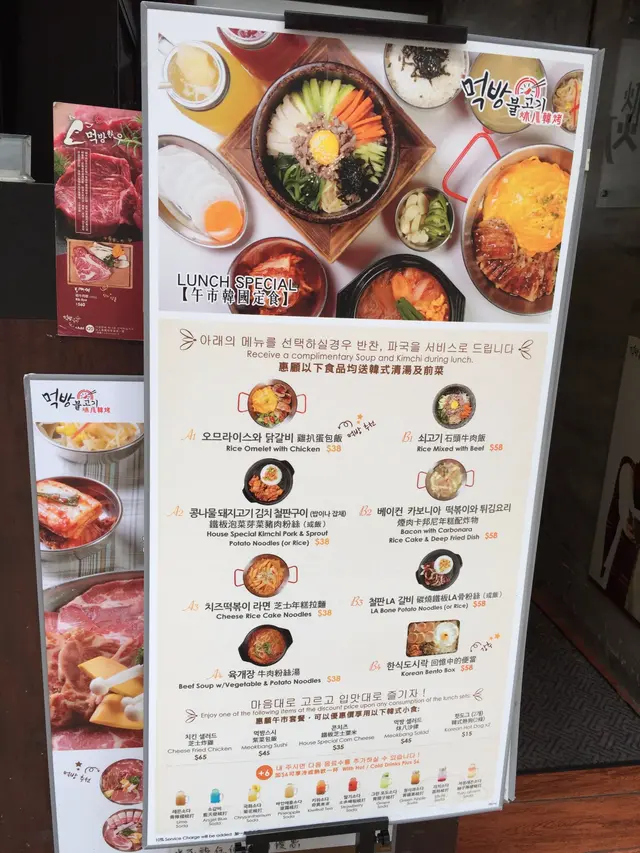 旁邊有一間炑八韓烤, 門口的menu 睇完覺得真的幾便宜$38-$58 之間包埋清湯前菜