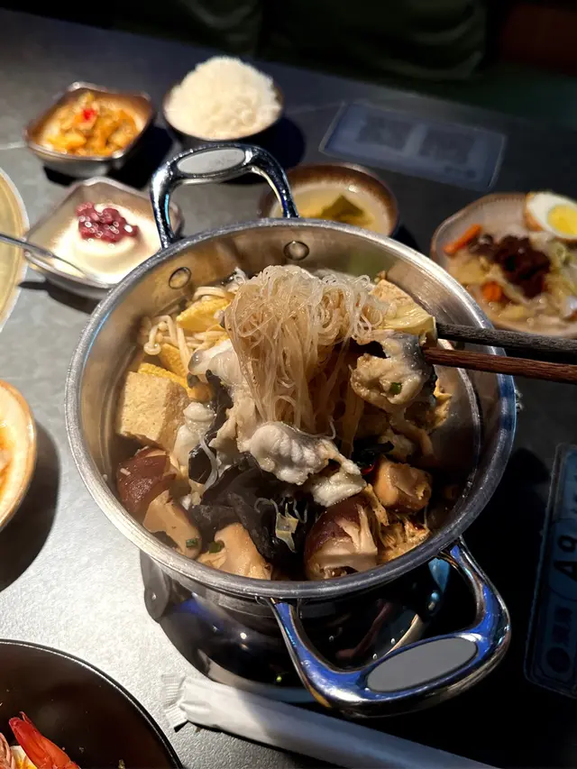 白鰻魚肉細膩綿滑,而且優質白鰻的確無土腥味,但唯獨是多少少軟骨,要小心食♡ 白鰻魚以小鍋蒸煮,底下鋪滿粉絲、配菜,吸滿魚汁鮮味yum!