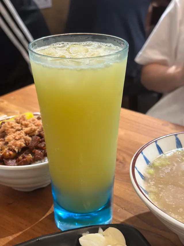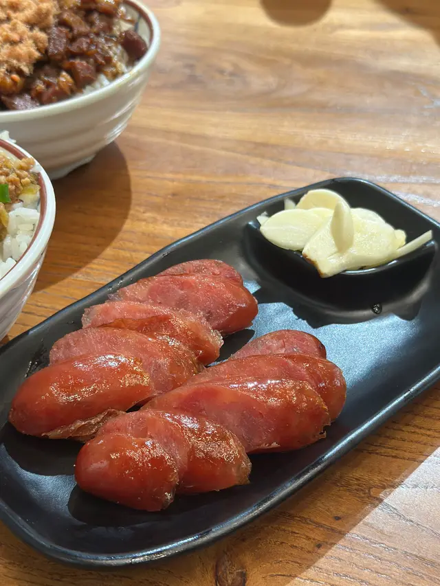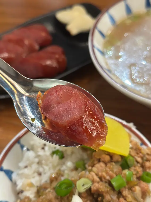 一入門口成個裝修已經好有台灣feel,我哋叫咗瓜仔肉燥飯,滷肉飯,花枝丸湯,蒜味台灣香腸,再嚟個白桃烏龍茶同百香果乳酸🤤