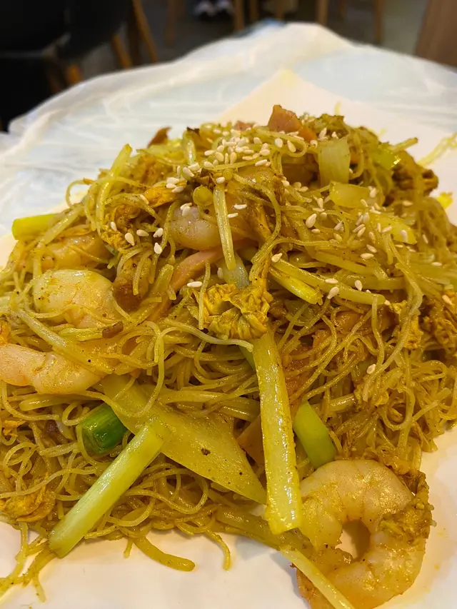 炒米炒得鬆散,沒有卷纏一起的情況,口感不錯。配料豐富,有蝦仁、火腿、洋蔥、🥚炒蛋等。帶有一點點辣味,但不會太辣,咖喱香十足,讓人食欲大開。
