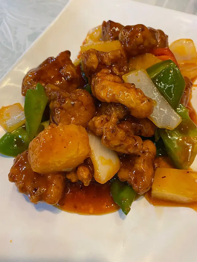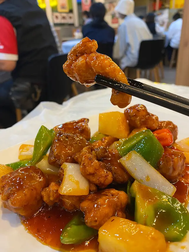 橙紅橙紅的一碟,酸酸甜甜,菠蘿🍍多汁,三色椒香脆,豬肉肉質嫩滑,非常下飯🍚