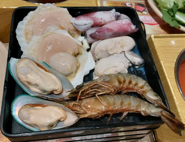 我和朋友點了2份牛八、1份海鮮及1份豚肉併雞肉 ,兼2款湯底!😚