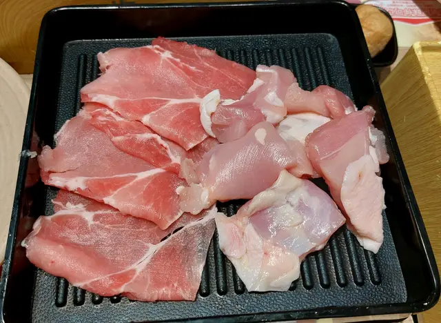 👇🏻“豚肉、雞肉”~估唔到啲雞肉好滑嫩 😃,但豚肉就麻麻喇!😐