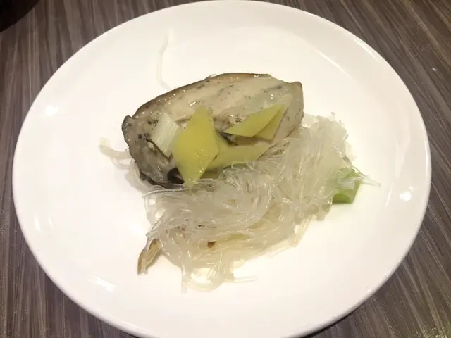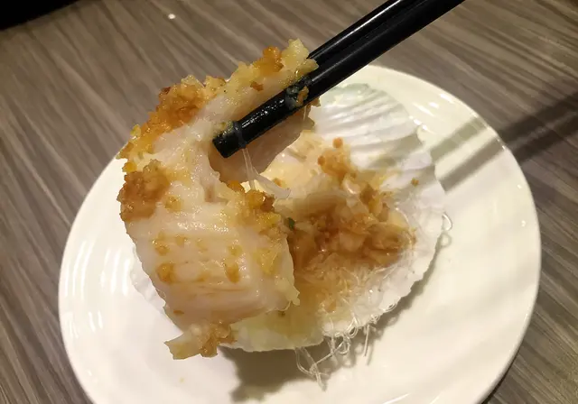 大元貝切開一半去蒸後體積沒有明顯縮水,比起湯匙還要更大隻肉厚,味道嫩滑清甜,加有微微海水的咸鮮,令人一吃難忘。