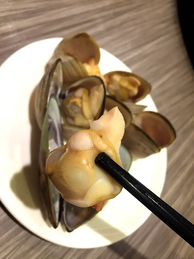 員工率先為我們蒸出的是貝殼盛盆,包括有青口和海蜆之類,送上來的份量都不少,起碼每人分到七至八粒蜆肉。蜆肉比想像中大隻而肉身飽滿,味道鮮美無比,爽口彈嫩,出奇地無沙,完全是新鮮之選。