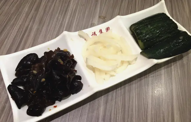 先有一碟三食在枱面,包括是醃青瓜、醃蘿蔔和辣黑木耳,爽口爽脆,微辣酸酸,十分開胃,又是佐酒良品。