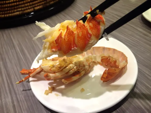 生猛龍蝦雖然是額外奉送,只有半隻但同樣是新鮮貨色。純白的肉身紥實肉爽,從蝦尾開始便輕易地把整件蝦肉連根拔起,爽口不霉爛,鮮味道盡。