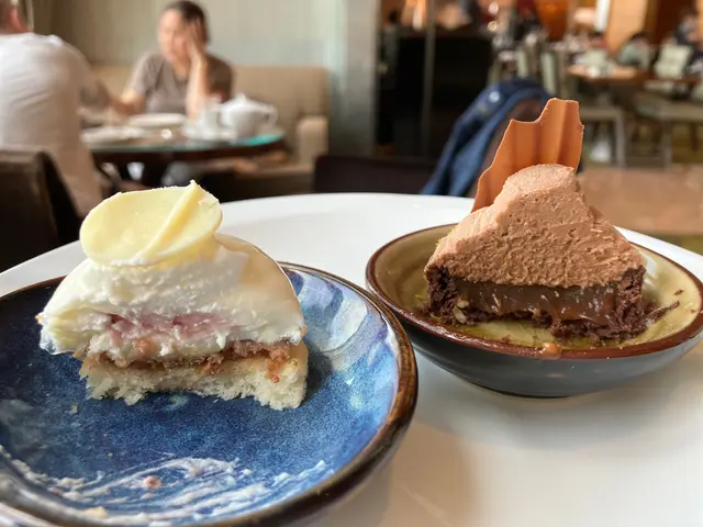 甜點方面,味道有清新的菠蘿蜜瓜慕絲奶凍杯子,層次分明豐富,食一件可滿足兩個口味的願望;也有味道重一點的朱古力絲絨蛋糕,朱古力力味濃而不太甜膩😋