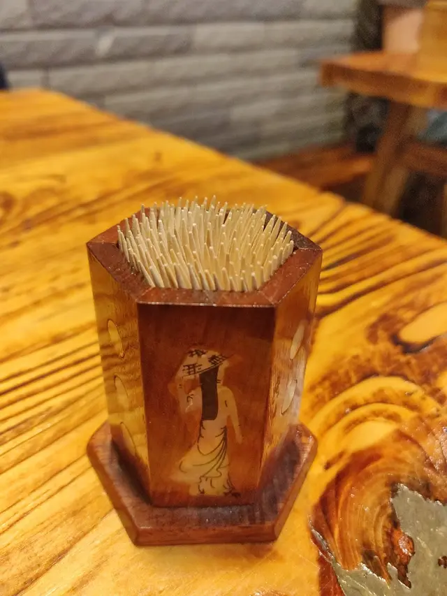 牙籤木盒,刻有少數民族的圖案。