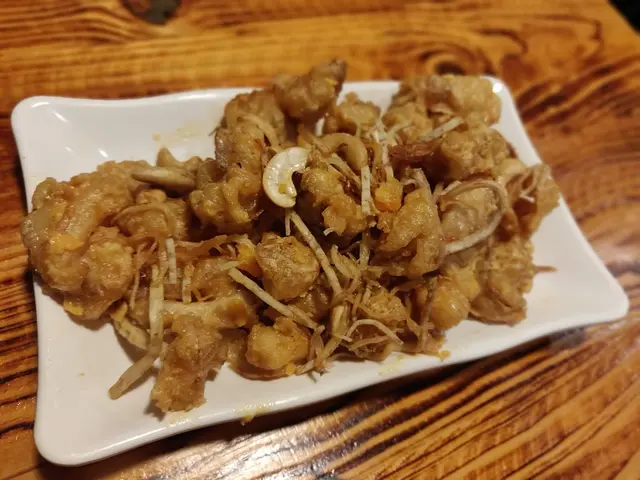 趁年輕,就要盡情任性。鹹蛋黃寶寶寶$98,一碟三味。鮮魷、銀魚和雞軟骨沾上鹹蛋黃薄漿炸至金黃香脆,伙酒吃一流也﹗可惜,我等不是杜康之輩,只能以茶代酒了﹗