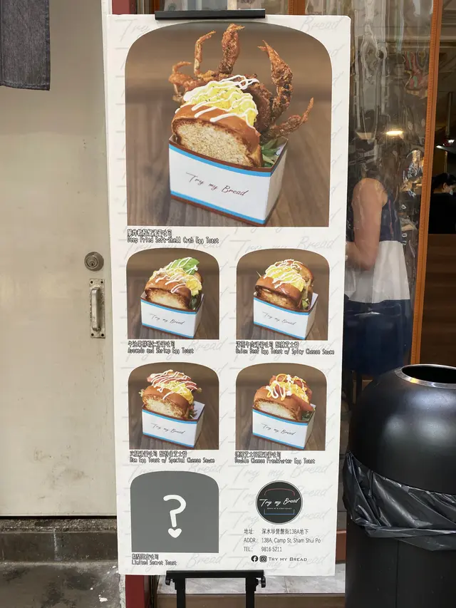 必試招牌打卡軟殼蟹滑蛋吐司🦀 Konkon22等級42020-05-28442 瀏覽 關注 今次要同大家分享既係近期大熱既Try My Bread😌已經Bookmark左一段時間,超想試佢既脆炸軟殼蟹滑蛋吐司😋今次終於黎左一試了~~1-🎈脆炸軟殼蟹滑蛋吐司 $501脆炸軟殼蟹滑蛋吐司$50脆炸軟殼蟹滑蛋吐司$50脆炸軟殼蟹滑蛋吐司$50一見到真係"嘩"左一聲😳😳賣相好靚,用黎打卡真係冇得頂❤️軟殼蟹係即叫即炸,所以咬落去係超脆﹗至於外層既吐司就烤成金黃色脆脆地咁,再配埋滑蛋、生菜、沙律汁,感覺中和返,唔算太heavy~店面真係唔算太大,裡面大約有兩張枱可以坐係度慢慢咁食,而店外亦有地方係可以即食既😊如果冇位而又唔想企係度食,都可以外賣架-🔸Try My Bread📍長沙灣營盤街138A號地下以上食評乃用戶個人意見 , 並不代表OpenRice之觀點。1分享必試招牌打卡軟殼蟹滑蛋吐司🦀 Try My Bread (營盤街) https://s.openrice.com/QrbT09Vau00檢舉 張貼 評分4味道3環境3服務3衛生4抵食推介美食脆炸軟殼蟹滑蛋吐司$50脆炸軟殼蟹滑蛋吐司$50脆炸軟殼蟹滑蛋吐司$50用餐日期2020-05-09用餐途徑堂食人均消費$50 (午餐)