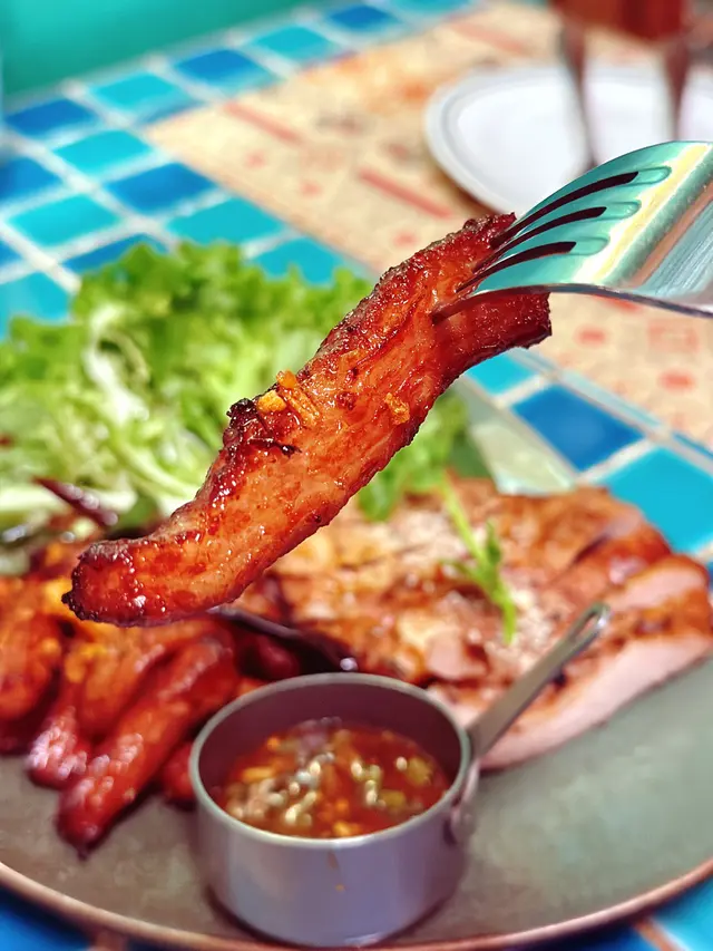 ✨炭燒豬頸肉拼炸魚露豬頸肉條:兩款豬頸肉都肉嫩多汁;而豬頸肉條經過油炸後,口感更佳,肉香、油脂香更豐富。