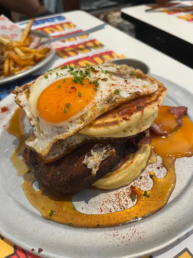 但個人認為上下嗰兩塊班戟太厚 再薄少少會好啲 糖漿會另外上 可以根據個人口味加入適量既糖漿 整體食落都中規中矩