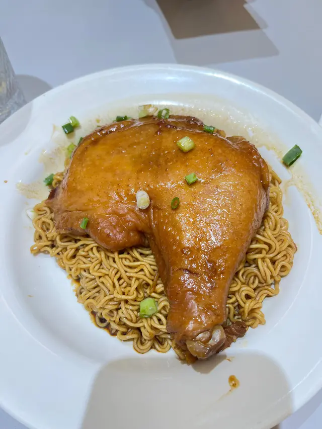 先講個撈公仔麵,一上枱俾個雞髀size驚艷到,大過我手掌,雞髀嫩滑,唔會柴,剛剛好。瑞士汁甜鹹適中,公仔麵彈牙爽口,整體個撈公仔麵係出色既。