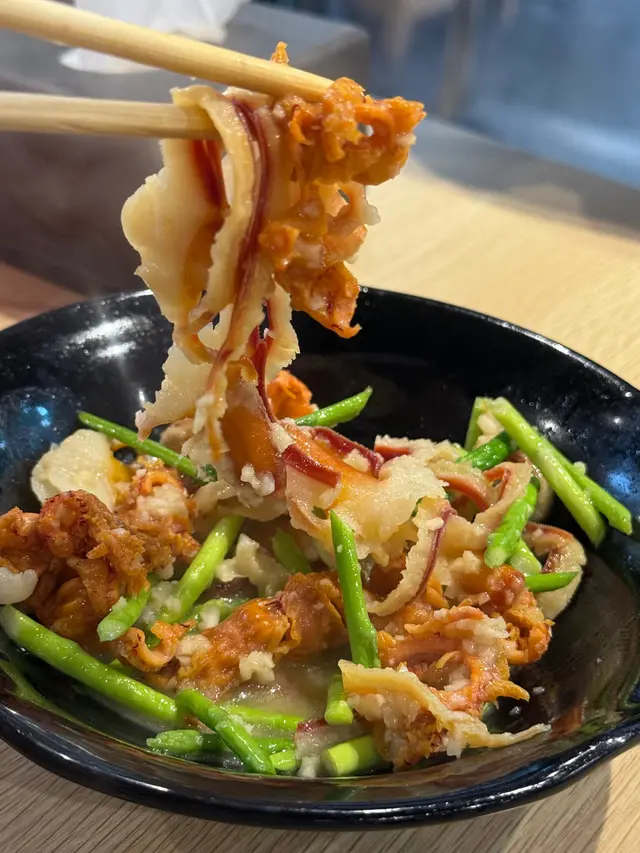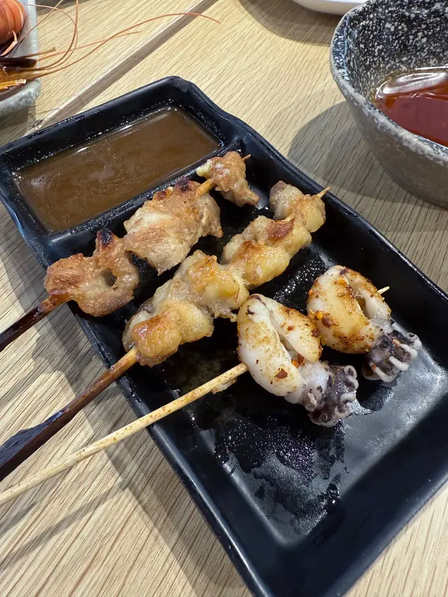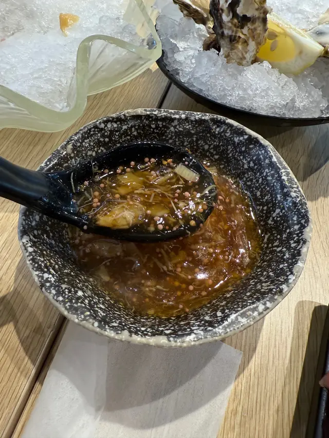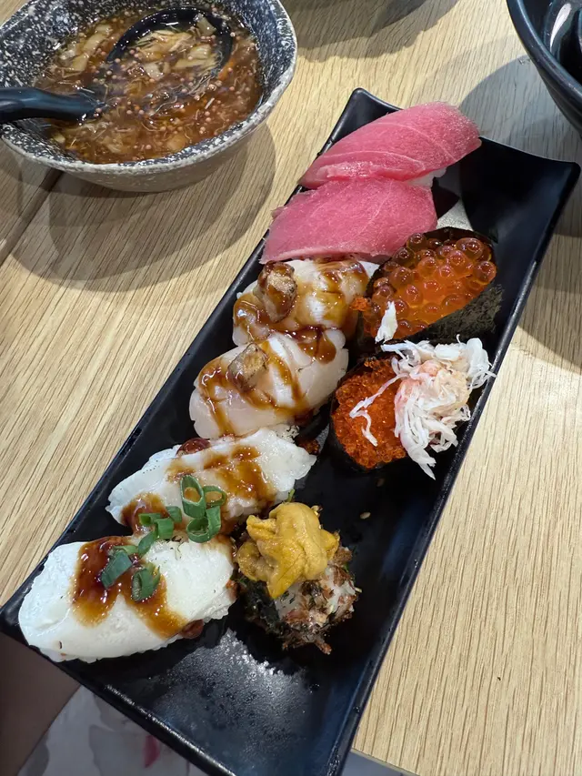 新鮮刺身有埋鮑魚揀,最欣賞係象拔蚌刺身,清爽脆嫩,大塊切食好滿足。生蠔處理得好乾淨,肉質雪白,無沙,蠔肉緊實有彈性。唔食得生嘅可以食芝士焗蠔,火候控制好好,蠔肉同貝位依然保持滑嫩,加上沙律醬,特別滋味。鵝肝帶子壽司好好食,帶子化解鵝肝肥膩感。炙燒和牛卷 炙烤後油脂融化滲透到肉內,口感好正。蘆薈蒜蓉炒雙蚌,有象拔蚌同蝴蝶蚌,入哂味,好惹味!鐵板鵝肝好正,油脂豐富,外焦內嫩。佢,串燒燒得岩岩好,唔會燶哂,仲可以鎖住到汁水。天婦羅皮薄但金黃香脆,完全無油膩感,口感輕盈。天婦羅蝦緊實彈牙又鮮甜,南瓜綿密入口即化。奶黃流沙年糕幾特別,軟糯香甜。