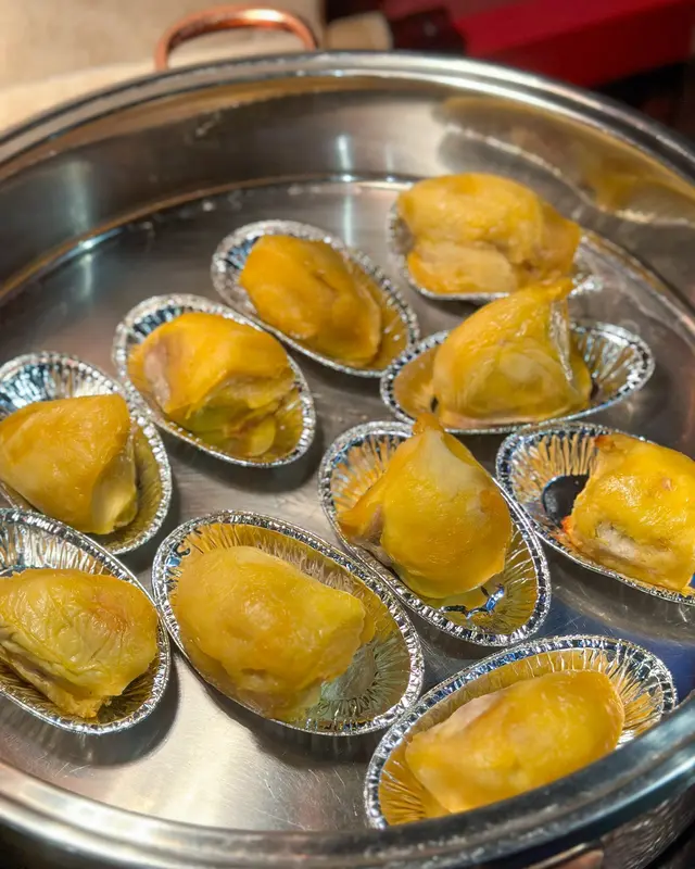 有多款菜、丸、餃類,熟食區有啲串燒,最吸引嘅當然係烤榴槤!