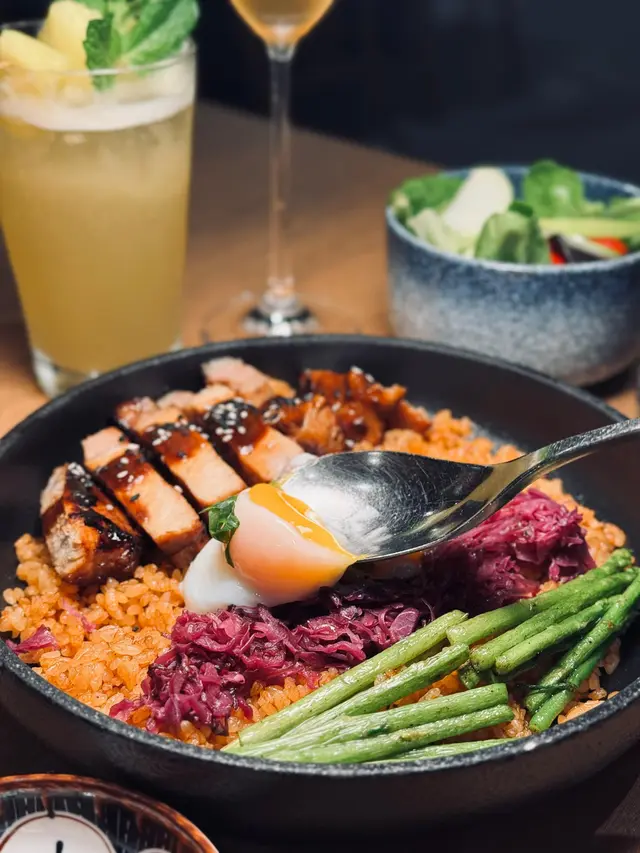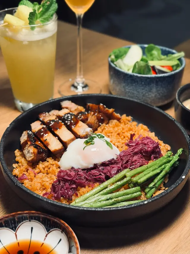 配埋旁邊既蒜香醋紅椰菜同泰露筍酸酸微清爽