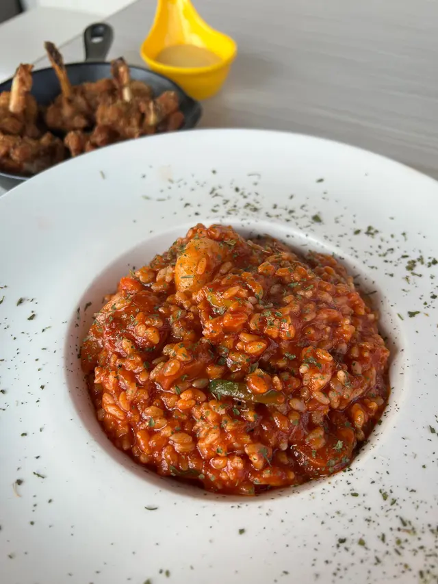西班牙海蝦辣肉腸燴飯 - 海蝦同辣肉腸好足料,茄汁味甜甜酸酸加埋三色椒香好好味