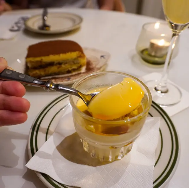 甜品要了提拉米蘇,帶有酒香味,質感濕潤。我更加鍾意秘製豆腐奶凍,好似豆腐花味,有啲港式的感覺😆
