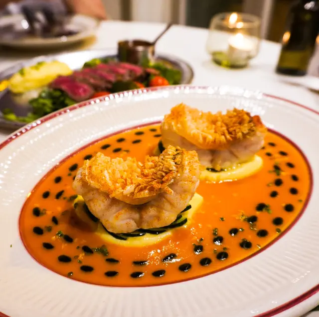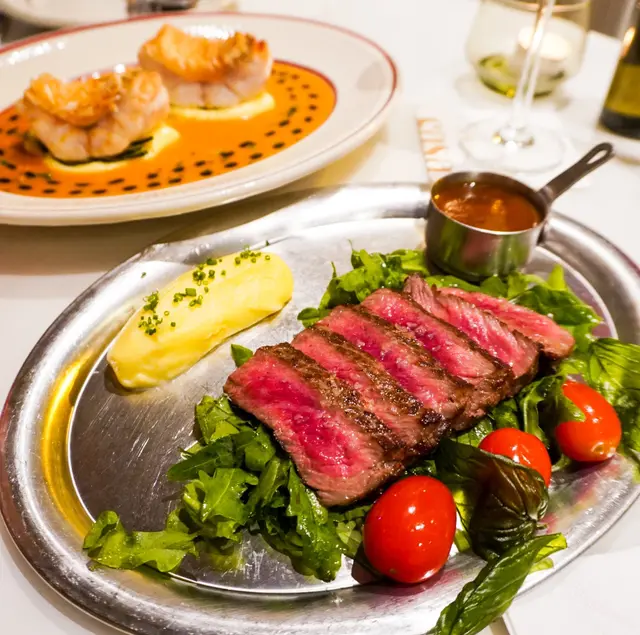 主菜揀左特別少少的脆皮鱗片魚,鱗片炸得香脆,連同嫩滑的魚肉食,醬汁由香橙、蕃茄煮成,十分美味😋另一道美國頂級USDA PRIME西冷扒配薯菜,要左5成熟,中間粉嫩,肉質軟腍,肉味香濃。伴碟的薯蓉也很好吃,軟滑又有牛油香!
