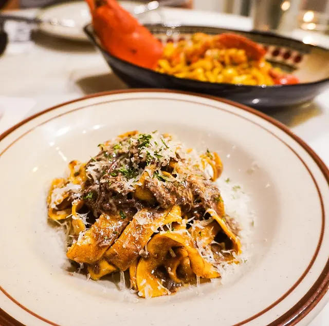 啊😍😍呢到啲手工製意粉係超好食🥰一款鴨肉肉醬雞肝寬帶麵,肉醬有一絲絲鴨肉,伴隨着香濃鴨和雞肝的香味,寬帶麵可以沾上滿滿的肉醬,麵條有蛋香口感十足💯 波士頓龍蝦扁麵條用上原隻波士頓龍蝦肉,賣相好靚,食落有蒜香味,十分惹味。扁麵條比起寬帶麵更有口感🤤兩款都好鍾意💕