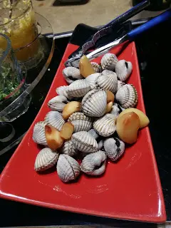 生蛤蜊據說很補血,不過大多數人都覺得太腥而不敢吃,我天生是一個海人,對腥呢種氣味沒甚麼感覺,忍耐度倒是頗高,通常新鮮的,我好少覺得腥,對我來說,那是鮮!倒是死了的海產,我就好遠都會已經嗅到腥。所以,在一片“好驚呀!““嘩,血淋淋咁嘅“的此起彼落尖叫聲之中,那既鮮而實在又帶點血液的味道的生蛤蜊就我一個人大快朵頤了!正!店家有提供蒜子,不過我試了一口,那過分辛辣的蒜味又太搶風頭了,把蛤蜊的味道都蓋掉了,又不太好。其實單食可能會較難接受,沾小小醬油就剛好提鮮又能稍稍染蓋那頗濃的“血液“味了。