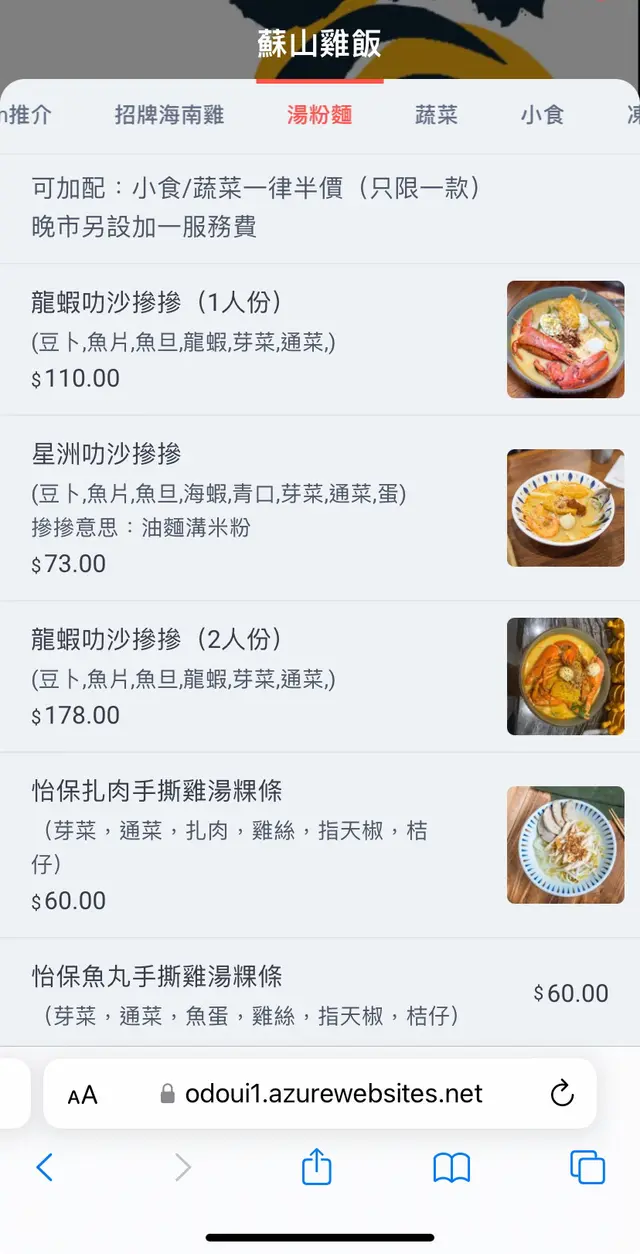 惹味星馬菜🧡💛大推經典海南雞飯🌴 charlottelamm等級42024-06-18618 views Follow 惹味星馬菜🧡💛大推經典海南雞飯🌴朋友介紹太子有間食星馬菜餐廳~呢一晚就去左試蘇山雞飯📍-招牌海南雞一定係必選之食🥢雞肉去骨,肉嫩彈牙,再配合油飯🍚隨餐仲有碗雞雜冬瓜湯,清甜又風味。-怡保扎肉手撕雞湯老鼠粉🥄配料相當豐富,手撕雞肉吸收咗湯底,份外惹味﹗老鼠粉唔係間間餐廳有得食,我鍾意😆-開心果椰子奶昔,椰子🥥控一定要叫,奶昔入口順滑,仲有淡淡的果仁香味🥜-砂拉越菠蘿冰的賣相好吸引,岩打卡😆 不過我唔算鍾意菠蘿🍍😂餐廳地點方便,可惜位置唔多,要預多少少時間先可以入座。招牌海南雞飯$85招牌海南雞飯$85怡保扎肉手撕雞湯老鼠粉$60怡保扎肉手撕雞湯老鼠粉$60魚蛋湯砂拉越菠蘿冰$48砂拉越菠蘿冰$48開心果椰子奶昔$32623The above review is the personal opinion of a user which does not represent OpenRice's point of view.LikeShare惹味星馬菜🧡💛大推經典海南雞飯🌴 蘇山雞飯 https://s.openrice.com/QrbT0qabK00Report Post Ratings4Taste3Decor3Service3Hygiene4ValueRecommended Dishes招牌海南雞飯$85招牌海南雞飯$85怡保扎肉手撕雞湯老鼠粉$60怡保扎肉手撕雞湯老鼠粉$60Date of Visit2024-06-11Dining Method堂食Spending Per Head$140 (晚餐)