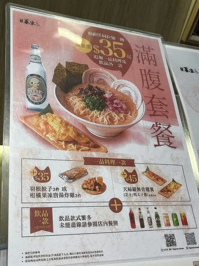 拉麵的份量對女生是夠飽,但是加$35的滿腹套餐有小食和飲品,也太划算了