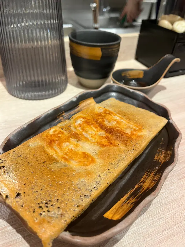 羽根餃子3件:完整長方型的羽根煎得金黃,又薄又脆的令餃子皮更香口。裏面的菜肉饀咬開濕潤有肉汁,尋常的菜式做得出水準就好吃