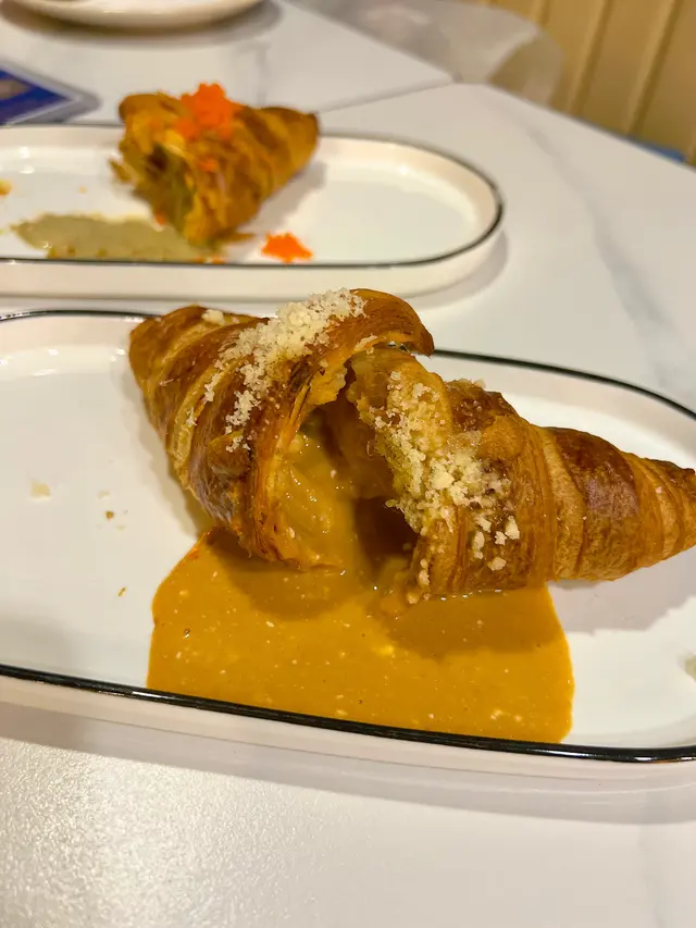 金黃酥脆的牛角包包住滿滿的內餡,蟹膏味道香濃