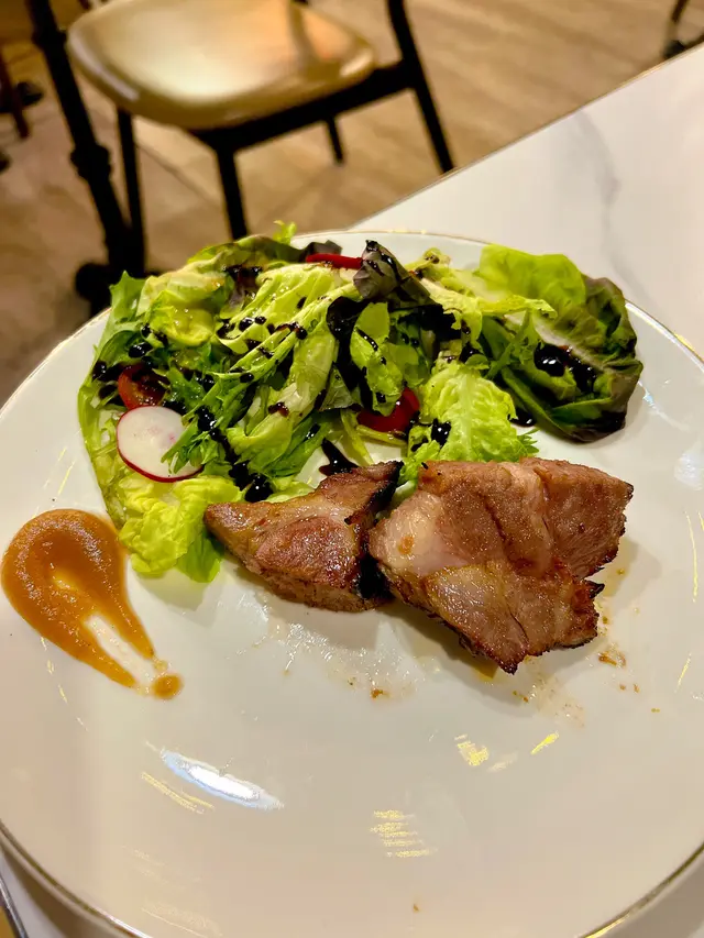黑毛豬柳份量唔多,但燒出來好香,肉質軟腍配埋蘋果醬酸酸甜甜好解膩,沙律菜🥗配黑醋汁好滋味