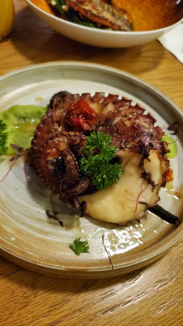 絕對稱得上是餐廳名物,八爪魚用上三小時低溫慢煮,粗身大條嘅魚鬚咬落超柔嫩,完全唔鞋口,表面煎到微脆帶焦香。點埋特製嘅柚子胡椒牛油豆蓉,鮮甜海味即刻提昇,仲有淡淡柑橘香,食落更好味。