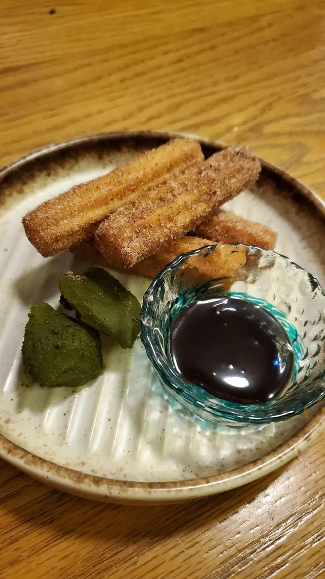 甜品一次過滿足兩個願望!Churro熱辣辣,外脆內軟,灑滿肉桂砂糖,點濃郁朱古力醬邪惡得嚟好幸福;日式蕨餅則充滿抹茶清香,口感煙韌,淋上黑糖漿甜而不膩,中西合璧嘅配搭意外地和諧。
