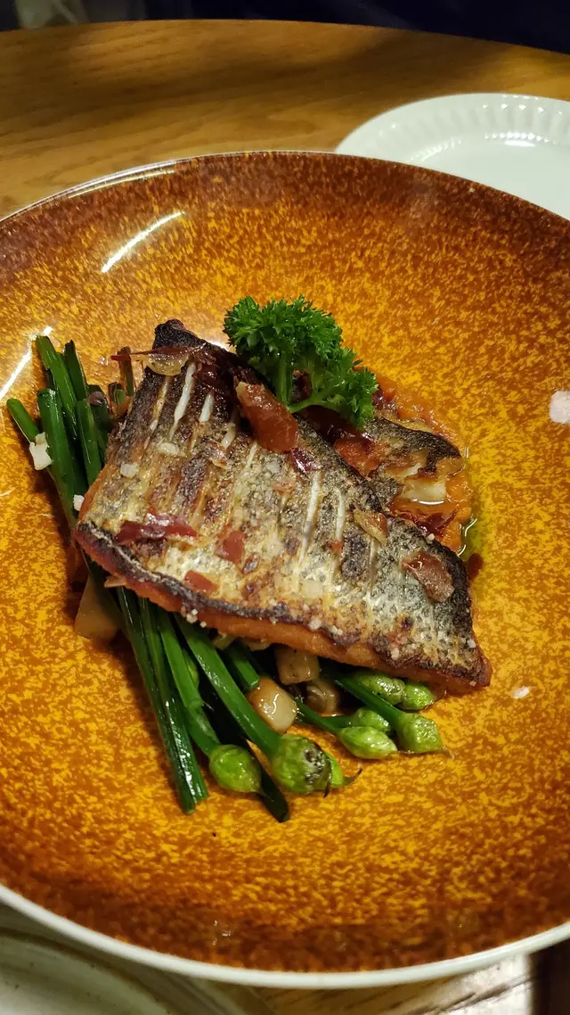 魚皮煎得金黃香脆,肉質卻保持到嫩滑緊緻,火候掌握得啱啱好。醬汁用西班牙火腿同紅咖喱調製,微辣惹味之餘帶少少酸甜,搭配幼滑南瓜蓉,平衡感做得好好。