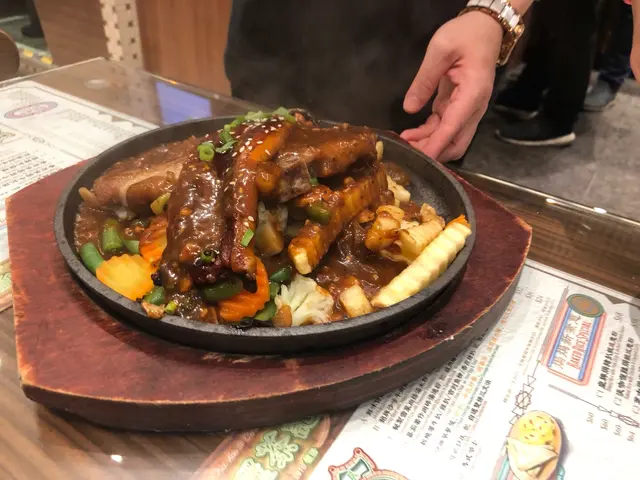友人就叫左碟懷舊鐵扒,有豬扒同鰻魚。估你唔到成個板入面嘅所有野都堅好食